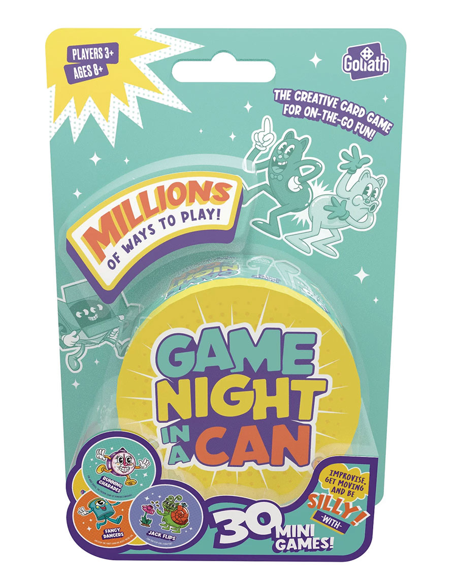 From Goliath Games. Pop the top of this ultimate party game for an awesomely creative time for all ages and any amount of players. It's perfect for everything from adult dinner parties to tween sleepover birthdays. It's the most versatile party game on the planet, and we should know, we've been to a lot of parties. Competively fly paper airplanes, perform ghost stories about the room you're in, create a brand new animal species for the last spot on Noah's Ark, bank balls of paper off your partner's face and more!