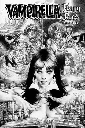 "Vampirella is still trapped in a mysterious dimension filled with twisted versions of classic children's stories. According to an unseen entity called The Storyteller, Vampirella's only hope of returning to her own world is if she lives out each chapter in the book of 'Feary Tales' until she reaches the end. Vampirella finds herself cast as 'Snow White' in a macabre re-imagining of the classic Betty Boop cartoon, written by Eisner & Jack Kirby award-winner Stephen R. Bissette (Saga of the Swamp Thing, Tyrant, Taboo) and Denis St. John (Monster Pie, Monsters & Girls: Amelia). Then Gail Simone (Red Sonja, Women of Dynamite, Wonder Woman, Batgirl, Secret Six) provides a fresh take on an old fishwife's tale when she sends Vampirella to a 'Thirsty, Thirsty Town' in the Old West to find out whether or not Sailor Jim and his mermaid bride, Nala, really are living 'happily ever after'."