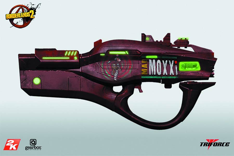 TriForce proudly presents the officially licensed Borderlands 2: Miss Moxxi's Bad Touch Full Scale Replica, masterfully sculpted and painted by the artisans at TriForce. The end result is the most authentic representation of this weapon available on the market. The Bad Touch Full Scale Replica is hand-finished and hand-painted to precision quality. Intricately crafted and cast in polystone, it measures 29 inches in length, weighs 20 pounds, and features working LED effects! Own this authentic piece of videogame history as part of a Limited Edition of 500 pieces worldwide.