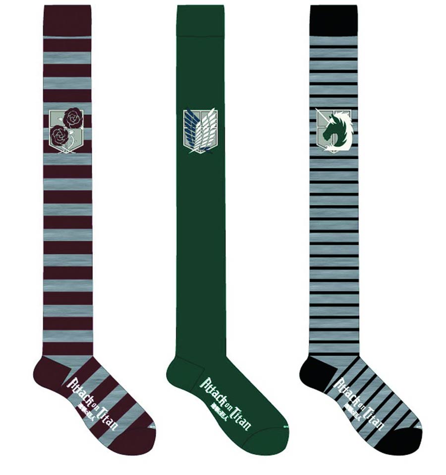 Fans of Attack on Titan will love these new over-the-knee socks decorated with symbols from the series! Choose from the Military Police Symbol, the Garrison Symbol, or the Scout Symbol.