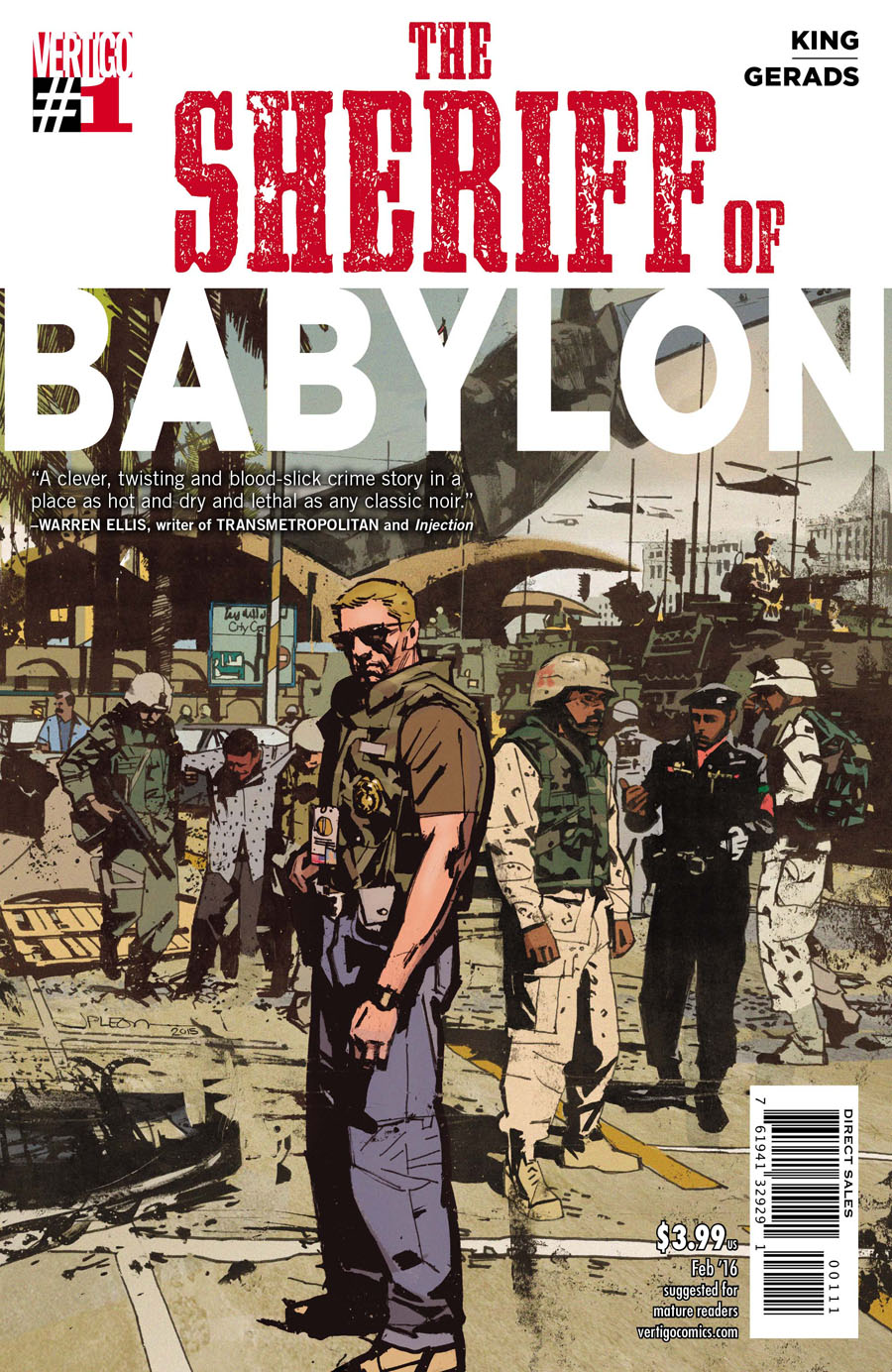 Baghdad, 2003. Florida Police officer-turned-military contractor, Chris Henry is tasked with training a new Iraqi police force. When one of his trainees ends up dead, Chris is forced to team up with Nassir, the last remaining cop in Baghdad. Pulling the strings to bring them together is the mysterious Sofia, an American-educated Iraqi who has returned to take control of the city's criminal underworld. This miniseries is a thrilling wartime crime drama told amid one of the most tumultuous times in modern history. THE SHERIFF OF BABYLON is a new eight-issue miniseries pulled from GRAYSON cowriter Tom King's real-life experience as a CIA operations officer and is illustrated by Mitch Gerads, cocreator of The Activity.
