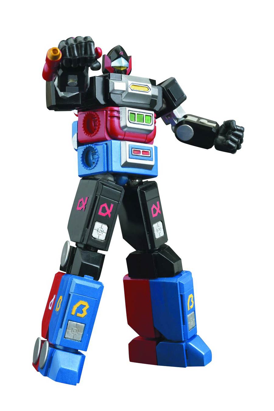 From Evolution Toy. Standing approximately 7" tall, this impressive mecha contains an alpha, beta and gamma robot, each with a set of hand, a sword, a weapon, 3 sets of Gattai hands, and 2 Gattai randoseru parts, plus a New Super Abega set (combat and robot modes).