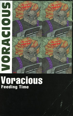 VORACIOUS: Feeding Time picks up right where the hit series, VORACIOUS, left off! Chef Nate Willner hunts dinosaurs in the past and secretly serves them at his restaurant in the present. But unbeknownst to him, he's actually been hunting in an alternate reality - a world where dinosaurs evolve into Saurians, a technologically advanced race that rules the far future! Some of these Saurians have mysteriously started disappearing from Cretaceous City and the local authorities are not happy about it. Featuring a wraparound 'Smiths 'Meat is Murder' Tribute' variant cover by Wuvable Oaf creator Ed Luce! Limited to 1500 copies!