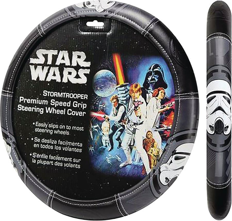From Plasticolor. This officially licensed Plasticolor Stormtrooper Car Steering Wheel Cover provides improved grip and comfort from the extreme temperatures of space. It's also an excellent way to add customized style to your vehicle's interior. Designed to fit most domestic and import vehicles, it fits snugly to stay in place while driving. This Plasticolor steering wheel cover is easy to install. With fine stitching and etched grey graphics, it's a fun way to show your dedication to the Imperial Army.