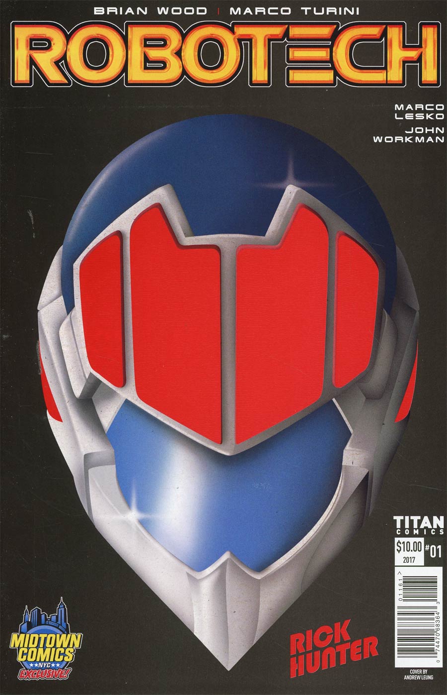 Harmony Gold's cult '80s television series Robotech returns for all-new adventures! Comic written by Brian Wood (DMZ, Briggs Land, Northlanders) and illustrated by Marco turini! TV episodes now available on Crackle, Amazon Prime & Netflix! Live-action film being developed by Sony Pictures! Comic features classic characters Rick, Lisa, Minmei, Roy, Claudia, and Gloval! New comic series will delight original fans and newcomers alike! With annual conventions, over 200,000 fans on Facebook, New toys and merchandise, Robotech fans are passionate supporters of this amazing cult franchise!"">Harmony Gold's cult '80s television series Robotech returns for all-new adventures! Comic written by Brian Wood (DMZ, Briggs Land, Northlanders) and illustrated by Marco turini! TV episodes now available on Crackle, Amazon Prime & Netflix! Live-action film being developed by Sony Pictures! Comic features classic characters Rick, Lisa, Minmei, Roy, Claudia, and Gloval! New comic series will delight original fans and newcomers alike! With annual conventions, over 200,000 fans on Facebook, New toys and merchandise, Robotech fans are passionate supporters of this amazing cult franchise!"">"This Midtown Exclusive cover will be printed with a special fifth ink color for the red portions of the helmet!