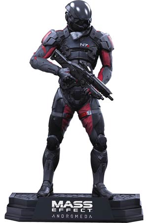 "From TMP/McFarlane's toys. Developed by BioWare and published by Electronic Arts, Mass Effect: Andromeda is the newest chapter in the Mass Effect series, and gives players the freedom to chart their own course through space, leading the first humans in Andromeda on a desperate search for a new home. Scott Ryder is a brand new character to the Mass Effect Universe. Figure stands 7" tall and comes equipped with primary Avenger AAX5 Assault Rifle. Alternate helmet-less head and Mass Effect: Andromeda branded display base included."