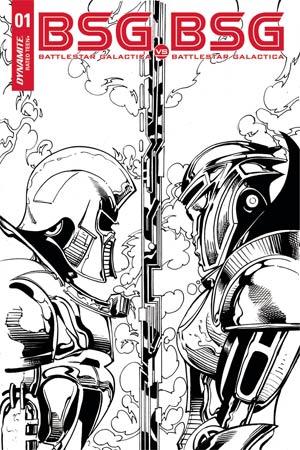 Battlestar Galactica vs Battlestar Galactica #1 Cover M Incentive Roberto Castro Cylon Split Profile Black & White Cover - Midtown Comics