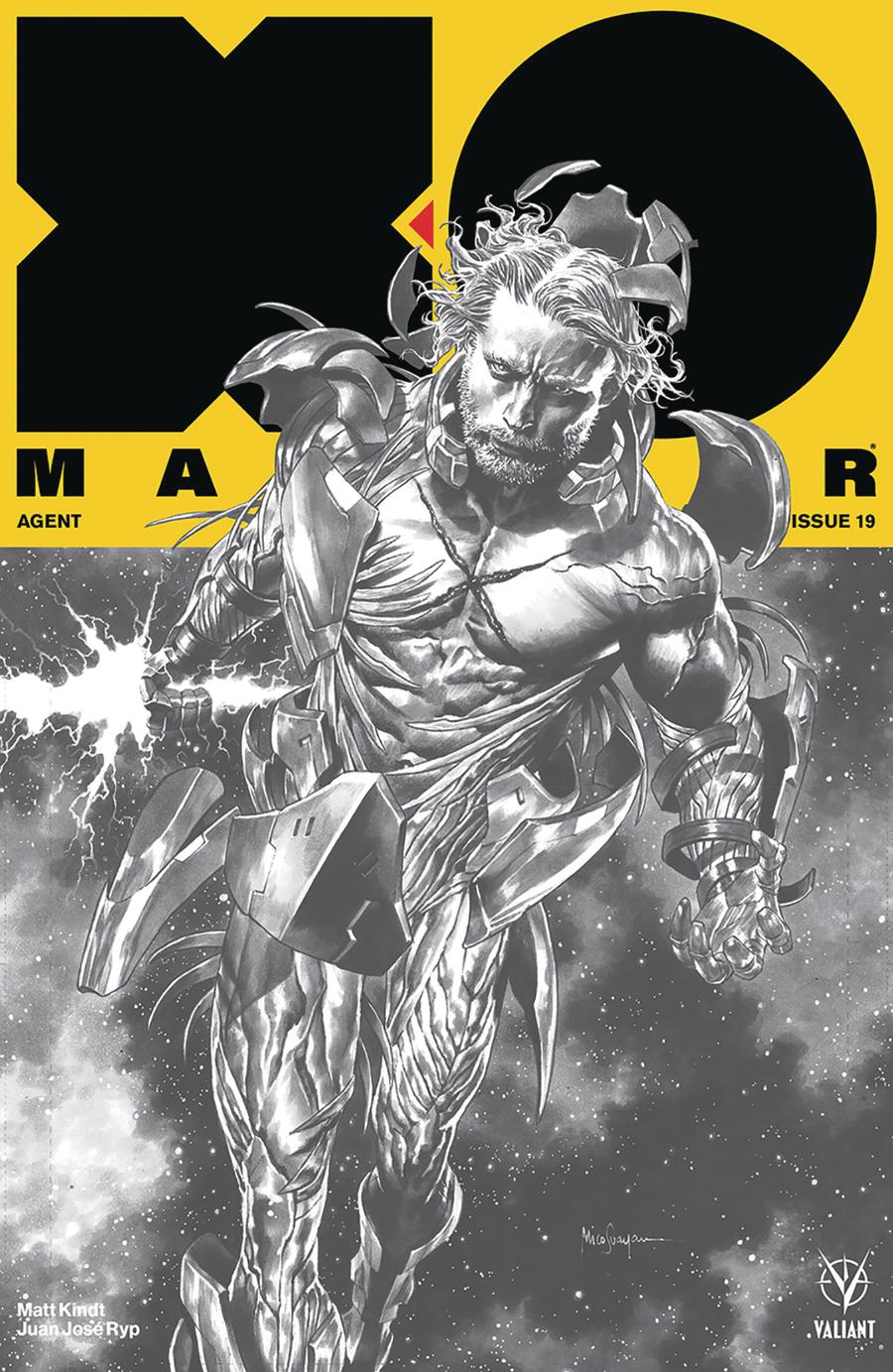 Celebrating the 75th issue overall of X-O MANOWAR since 2012! Beyond time, space, and reality, there lies the Unknown…and now it's coming here! When soldiers from a mysterious foreign realm arrive on Earth, it's up to the armored Visigoth known as X-O Manowar - newly returned to the planet and now the leader of his own elite G.A.T.E. unit - to deal with the intrusion. But are these otherworldly emissaries truly the threat they appear to be, or does a larger danger loom over the Valiant Universe still? Worlds collide as Eisner Award-nominated writer Matt Kindt (ETERNITY, Grass Kings) and incendiary artist Juan José Ryp (BRITANNIA) bring a new plane of existence crashing down upon our own in a brand-new jumping-on point for 2017's best-selling series!