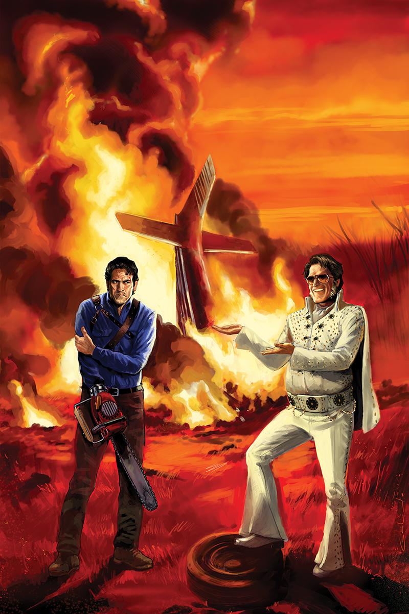 Following an unscheduled crash-landing in Graceland, Ash must quickly dust himself off and do what he does best-defending Necronomicons from Evil! As if plummeting into the King's mansion wasn't bad enough, Bubba enlists an undead Elvis impersonator to take on everyone's favorite deadite-slayer while the fate of the real Elvis remains unknown. Don't miss the deadly conclusion to this hunk of burning crossover grooviness that's guaranteed to raise temperatures and set your soul afire!