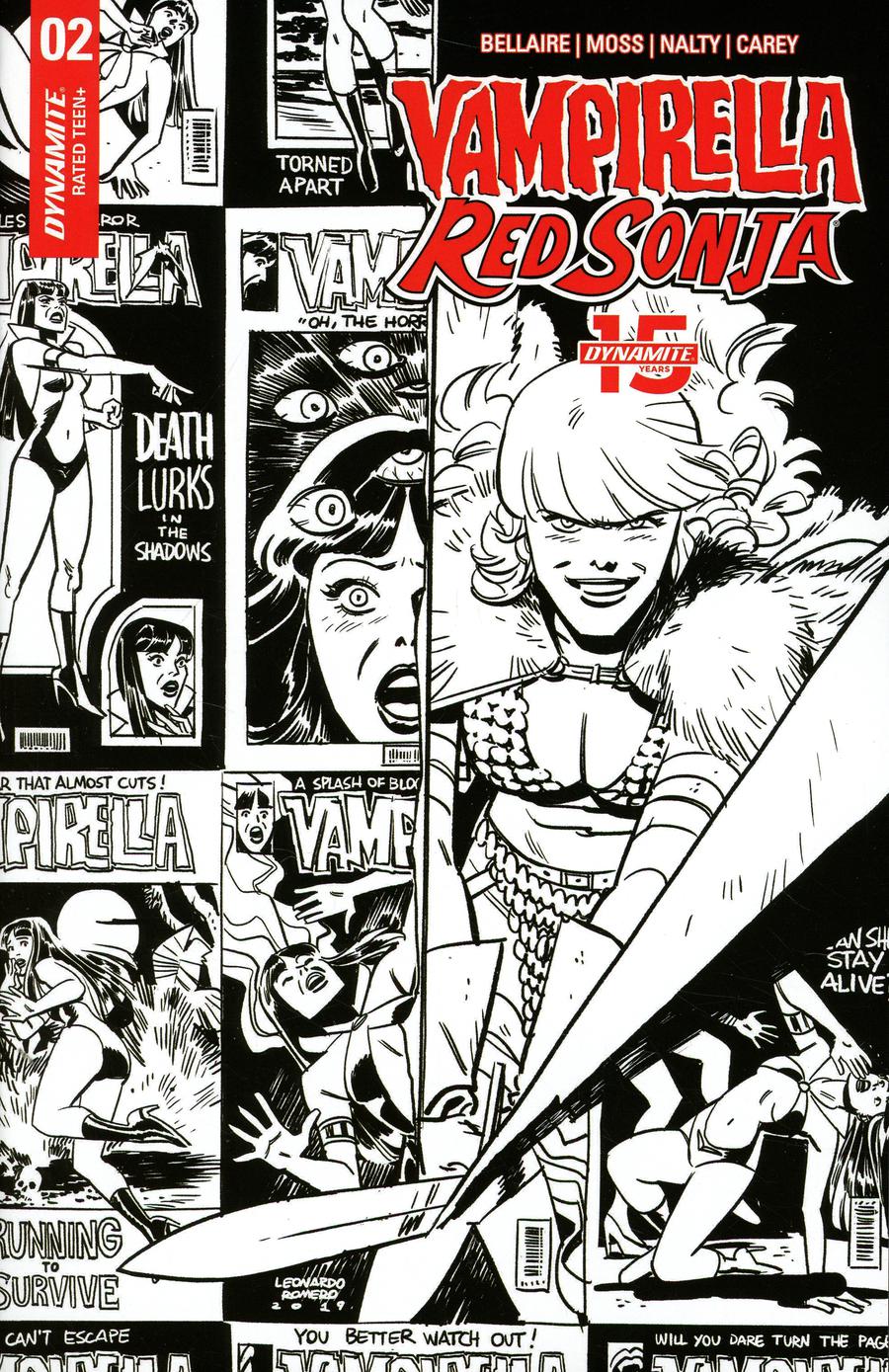 Vampirella Red Sonja #2 Cover M Incentive Leonardo Romero & Jordie Bellaire Black & White Cover - Midtown Comics
