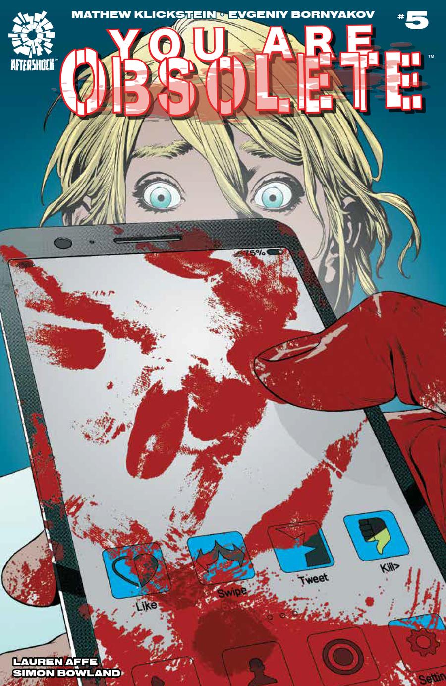 Lyla must choose to make the ultimate sacrifice, changing everything she thought to be true. She is tasked to use the 'killer app' the children of the island have created in order to take out all the adults on the island. YOU ARE OBSOLETE is a spine-tingling thriller that evokes the eerie naturalism of 1970s horror films with a modern deadly digital twist. Written by Mathew Klickstein (Sony Pictures' Against the Dark, Slimed!, Springfield Confidential, Selling Nostalgia) and drawn by Evgeniy Bornyakov (DESCENDENT).