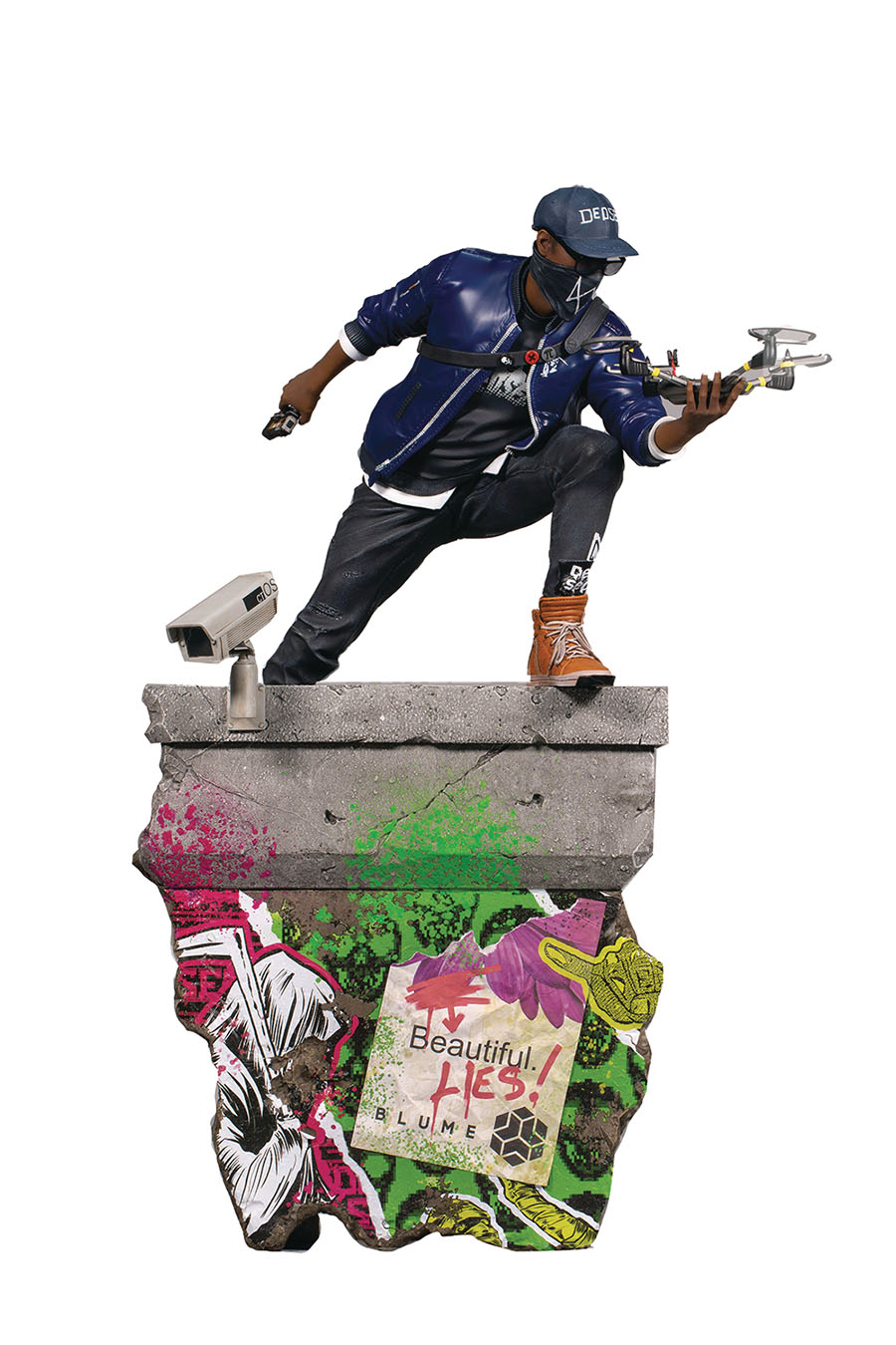 From PureArts Limited. Hacktivist Marcus comes with interchangeable gadgets in his left hand, that you can switch to either his cell phone or his drone. This 1/4-scale polyresin statue stands 23 5/8" tall and is limited to only 1000 pieces!