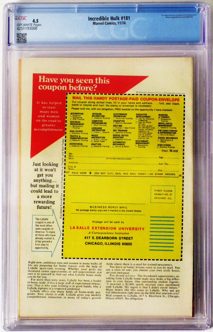Incredible Hulk #181 Cover H CGC Graded 4.5 - Midtown Comics