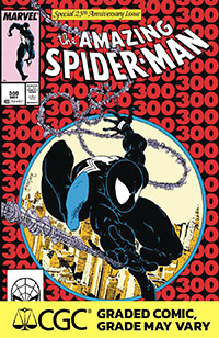 One of the fiercest rivalries of all is born in battle as Spider-Man meets his deadliest foe - a terrifying entity with all his powers, twice the muscle and two reasons to hate the wall-crawler! Because the symbiote costume that Peter Parker rejected has bonded with disgraced reporter Eddie Brock, who blames Spidey for ruining his career! Together, they are Venom! They've already terrorized Mary Jane, and now they seek revenge on their mutual nemesis! Can Peter summon all his strength and will and somehow find a weakness to exploit in Venom? Or will the bell toll for Spider-Man? From the fan-favorite creative team of David Michelinie and Todd McFarlane, it's one of the all-time great Marvel comic books, boldly re-presented in its original form, ads and all! Reprinting AMAZING SPIDER-MAN (1963) #300. CGC GRADED 9.6 OR HIGHER!