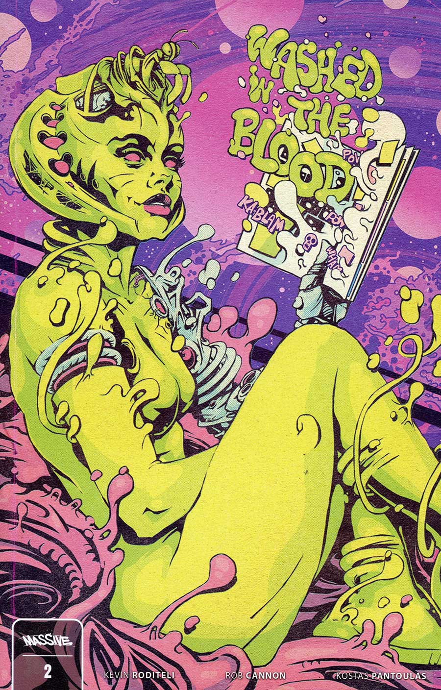 "Washed In The Blood takes you on a trippy thrill ride through visceral illustrations and an intensely cold, savage, post-apocalyptic tale."