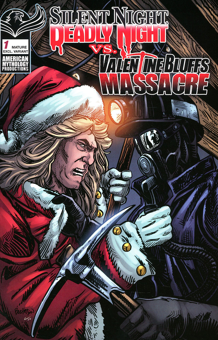 Two of the biggest slasher franchises from the 1980s return in a no holds barred one shot battle royale! The Killer Santa from Silent Night, Deadly Night and the Bloody Miner from Valentine Bluffs Massacre are patients at the same insane asylum being studied as they recover from injuries that should have left them dead. But something sinister is at play in the halls of this institution, a serial slasher has put these two titans of terror on a collision course that will rock the holidays this season! James Kuhoric - the author of the multi award-winning horror mash up "Freddy vs Jason vs Ash" returns to his horror roots with another crossover that will leave horror fans breathless. Don't miss the slasher event of the year!
